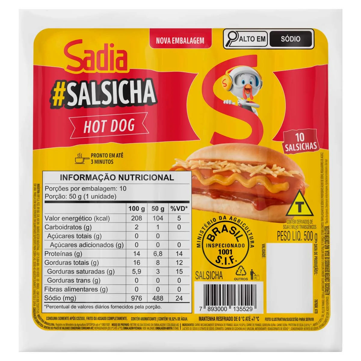 Salsicha Hot Dog Sadia 500g oferece sabor autêntico e qualidade confiável, ideal para preparar hot dogs saborosos com praticidade. Produzida com ingredientes selecionados, garante textura suculenta e cozimento uniforme. Perfeita para lanches rápidos, é uma escolha segura para quem busca sabor consistente e confiança em produtos Sadia.